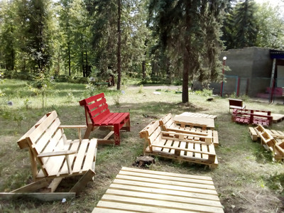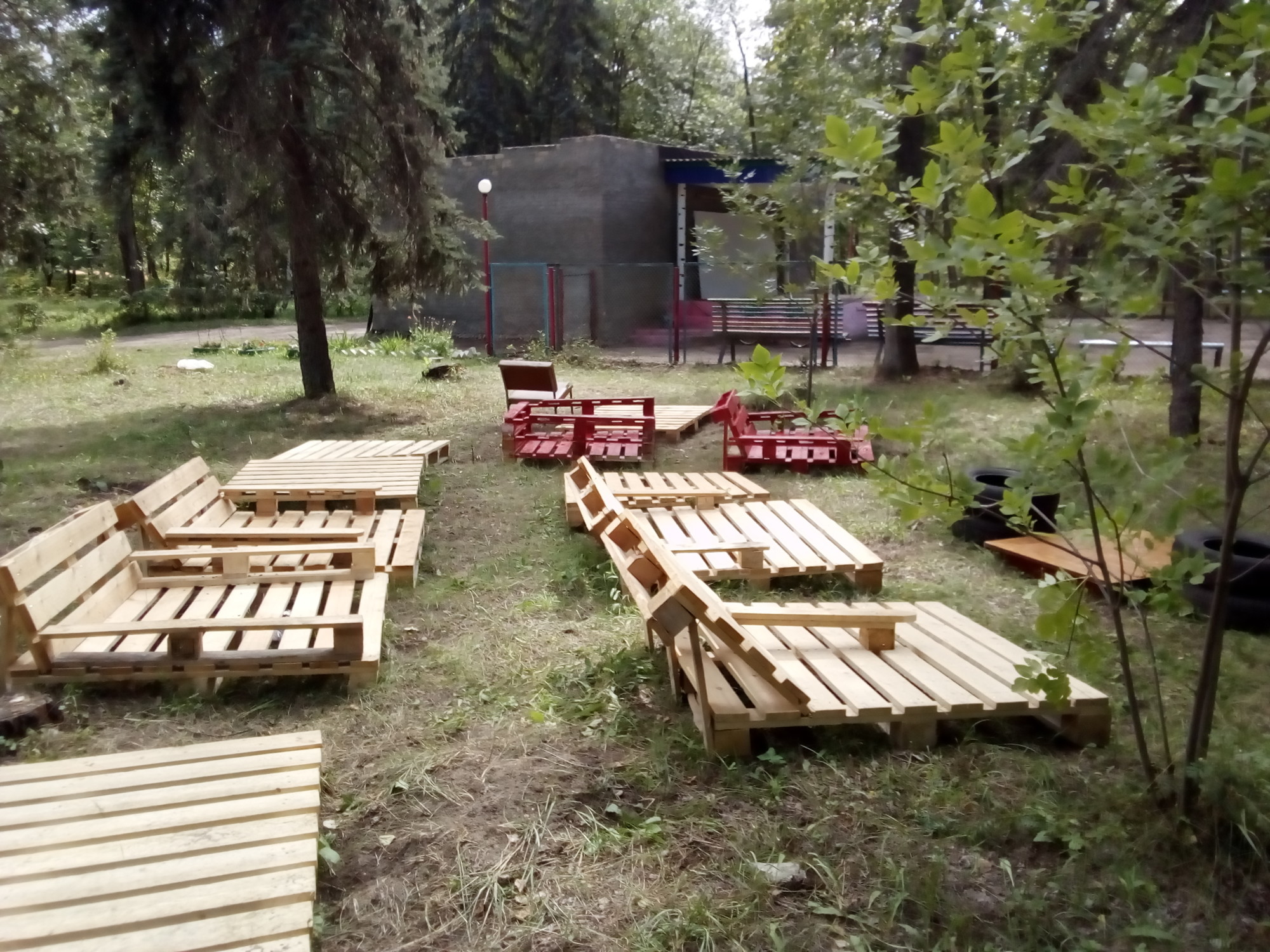 Зрители могут смотреть кино на установленных скамейках площадки.