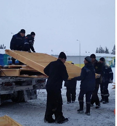 На территории дворца спорта "Олимп" начались работы по монтажу горки, приобретенной ЗАО «Проминвест». Её монтаж также осуществляется работниками этого холдинга.