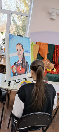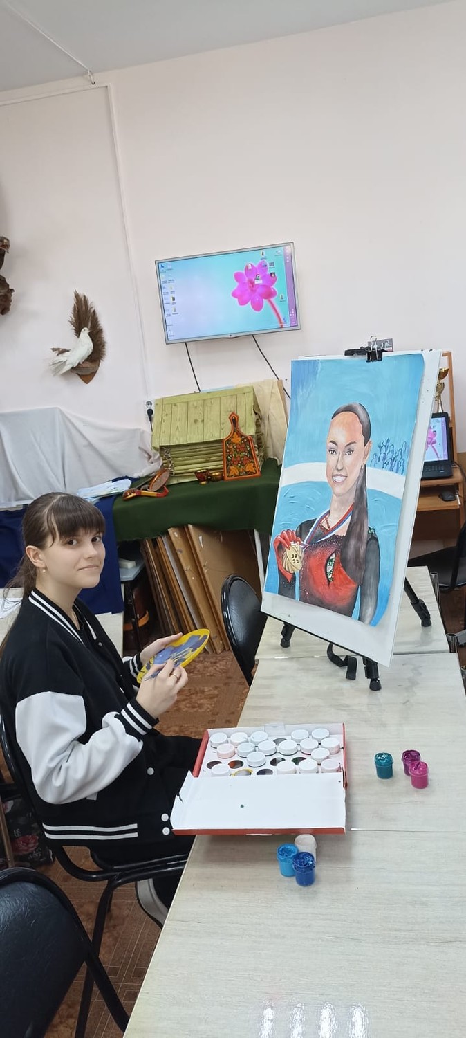 Ученица художественного отделения Шелеметьева Софья на протяжении года пишет работы, посвященные нашей Великой фигуристке.