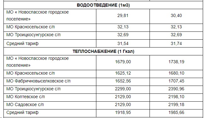 В 2019 году в Новоспасском районе средний рост тарифов по всем видам коммунальных услуг составит 3,8 %.