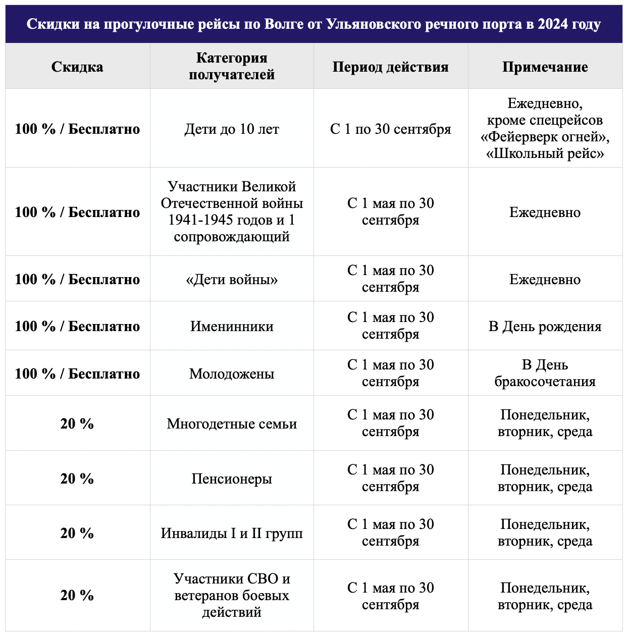– «детей» и участников Великой Отечественной войны 1941-1945 годов (100%, ежедневно).