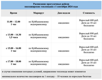 С 1 сентября 2024 года Ульяновский речной порт переходит на осеннее расписание движения теплоходов.