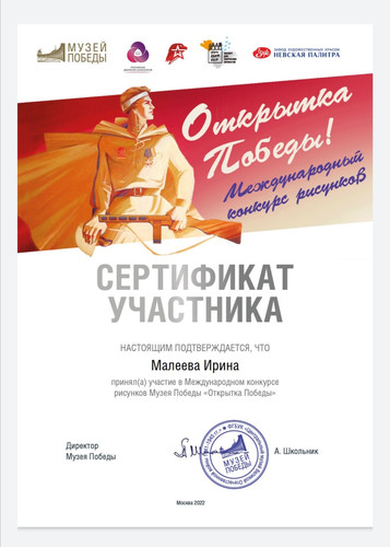 Ученицы художественного отделения Новоспасской детской школы искусств Бережная Ксения, Малеева Ирина и преподаватель изобразительного искусства Джамиева Эльвира Абдулловна приняли участие международном конкурсе рисунков Музея Победы «Открытка Победы». Более 20 тысяч работ из всех уголков России, а также ряда зарубежных стран были представлены на онлайн выставке.