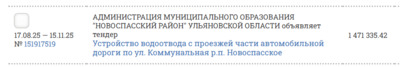 А вот желающих на устройство водоотвода с проезжей части автомобильной дороги по ул. Коммунальная не находится, в третий раз даётся объявление на тендер.