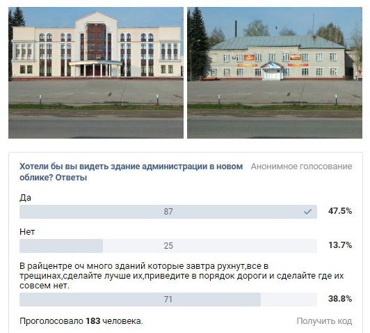 Конечно, в райцентре, есть более важные объекты, строительство которых необходимо сейчас, чем строительство нового здания для администрации. И эту точку зрения мы поддерживаем, но на перспективу, думаем, что и здание администрации надо строить новое, чтобы было не стыдно на него смотреть.