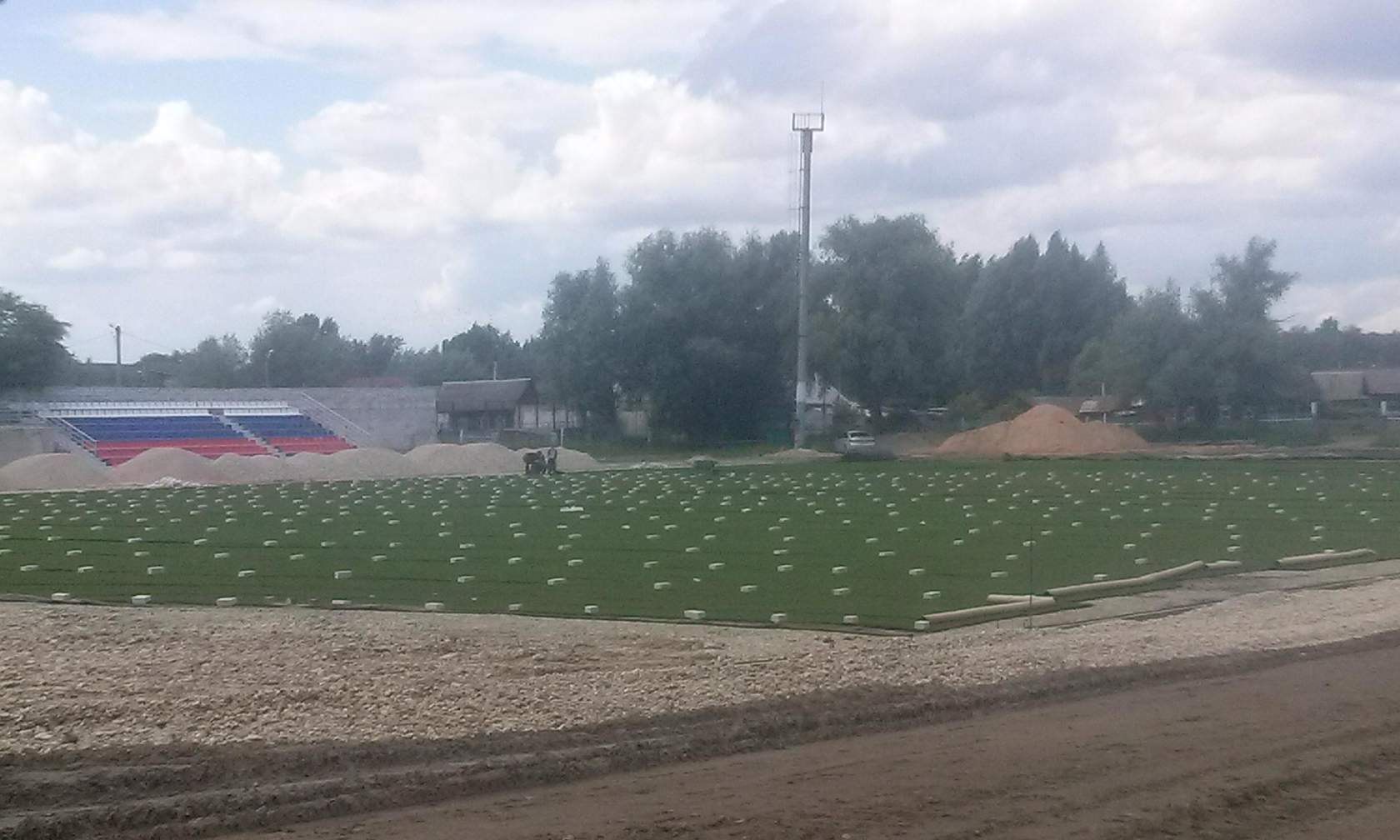 В настоящие время в ходе работы выполняется склейка поля и подготовка к асфальтированию беговых дорожек.