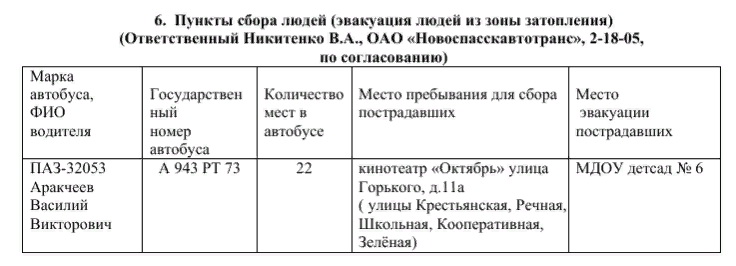 в котором отражены планы по мероприятиям, в том числе и эвакуации жителей райцентра и сёл из возможных зон подтопления.