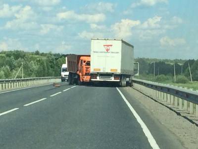 Как уже сообщалось, вчера днём, у села Старое Томышово произошло ДТП. КамАЗ въехал в полуприцеп следовавшей навстречу фуре MAN.