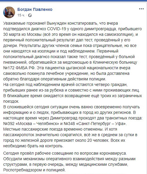 Между тем, вчера, 14 апреля, Глава администрации Карсунского района Владимир Чубаров заявил о тысячах контактных с заболевшими COVID-19. К тому же, вероятно, эта цифра не окончательная и продолжит расти.