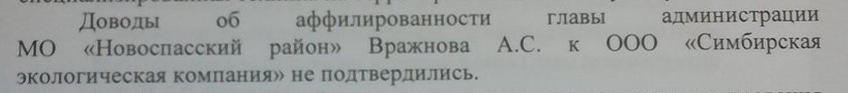 И второй - о том, что прокуратура не усмотрела аффилированности главы района и ООО.