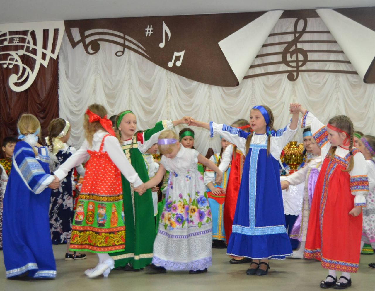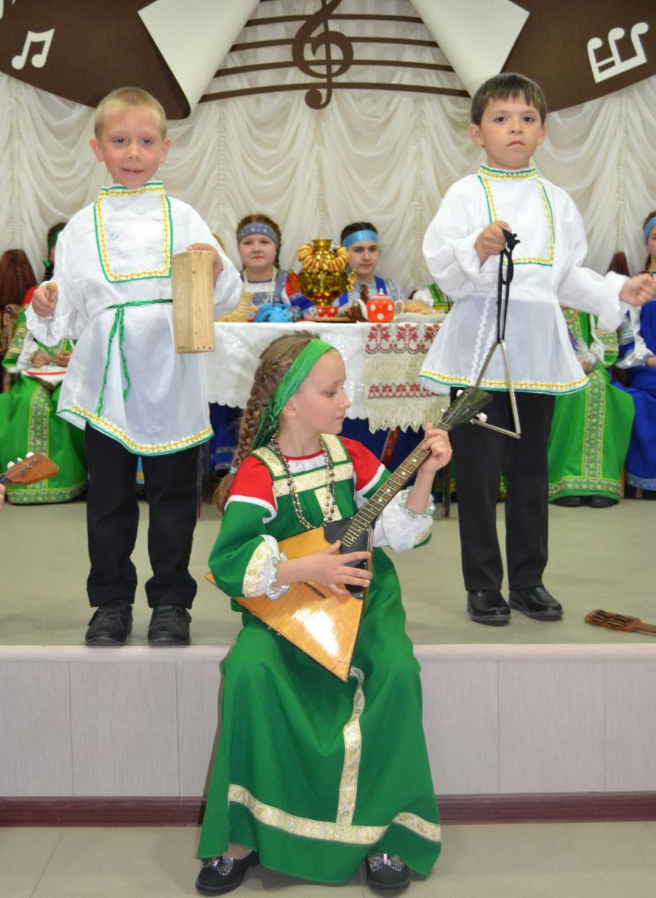 В ходе мероприятия дети осваивали традицию приёма гостей в русской культуре, познакомились с семейной традицией рождения ребенка. В роли хозяюшки выступила Хованская Анастасия. Младшая и старшая группы вокального ансамбля, солистка Ермакова Анастасия исполнили разнохарактерные народные песни «К нам гости пришли», «Матрёшки», «Долговязый журавель», «Ой, ниточка тоненькая», «Ой, вы ветры, ветерочки», «Русский перепляс», «У бабушки Варварушки», сопровождая инсценировкой, переплясами, игрой на балалайке и ложках (преподаватель Булкина Ольга Петровна). Юные музыканты показали нежные чувства при исполнении колыбельной, укачивая куклу, сшитую своими руками из лоскутков.