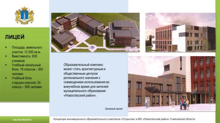 В очередной раз поменялась концепция новоспасской средней школы № 3. Теперь это будет образовательный комплекс, состоящий из учебного начального блока на 300 человек, для старших классов на 500 человек. Новое учреждение будет представлять собой единое образовательное пространство, где предусмотрены условия для детей с ОВЗ и детей-инвалидов, будет реализована предпрофильная и начальная профессиональная подготовка. Также в концепции — расширенные специализированные зоны: большая лаборатория для занятий физикой, химией, биологией, оснащенные современным профессиональным оборудованием; двухуровневая библиотека, опытнические зоны: высокотехнологические теплицы с нанотехнологиями, агропитомник, зооферма. Центр дополнительного образования с зоной «Технопарк». Особое внимание будет уделено изучению иностранных языков.