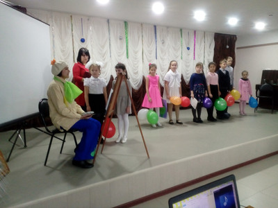 Старшие товарищи во главе с Главным художником загадывали загадки, делали фокусы, проводили игры , а затем посвятили первоклассников в мир искусств.