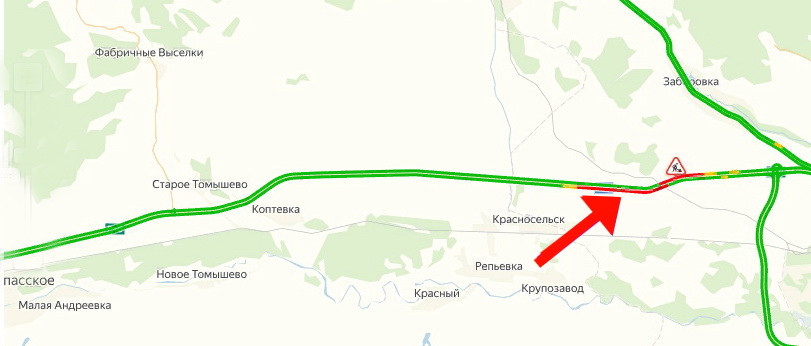 Уже на месте ремонта сотни автомобилей собираются в затор. Скорость автомобилей не превышает около 5-10 километров в час.