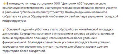 Вот таким текстом, о "героическом" подвиге работников "Центротех АЗС", рассказывает местный журналист: