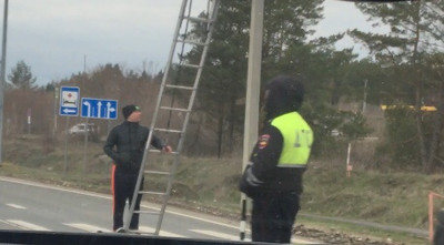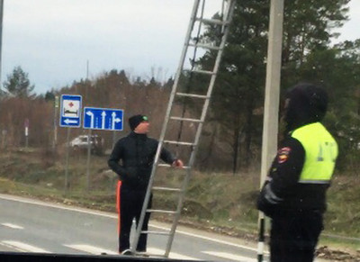все проще, он проходил мимо, и его автодоринжиниринг попросил подержать лестницу, а вы тут раздули историю , ну а ДПС просто обязано в этой ситуации быть и смотреть за БДД