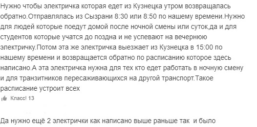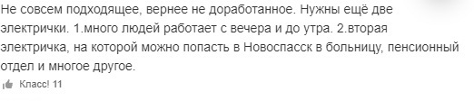 То есть, по словам жителей нужны ещё две электрички, что собственно и логично, кому утром надо, например, в Новоспасское на работу или учёбу, или в больницу, а также в собес, БТИ и другие организации, а вечером назад домой.