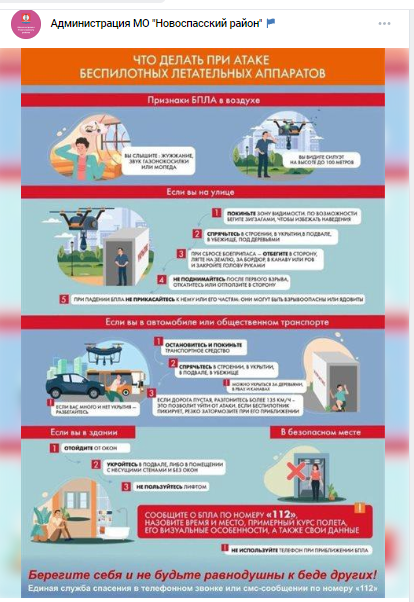 Масло в огонь подливала и администрация района публикуя плакаты с действиями жителей в случае атак дронов. На этих плакатах снова указывалось, что необходимо пользоваться убежищами.