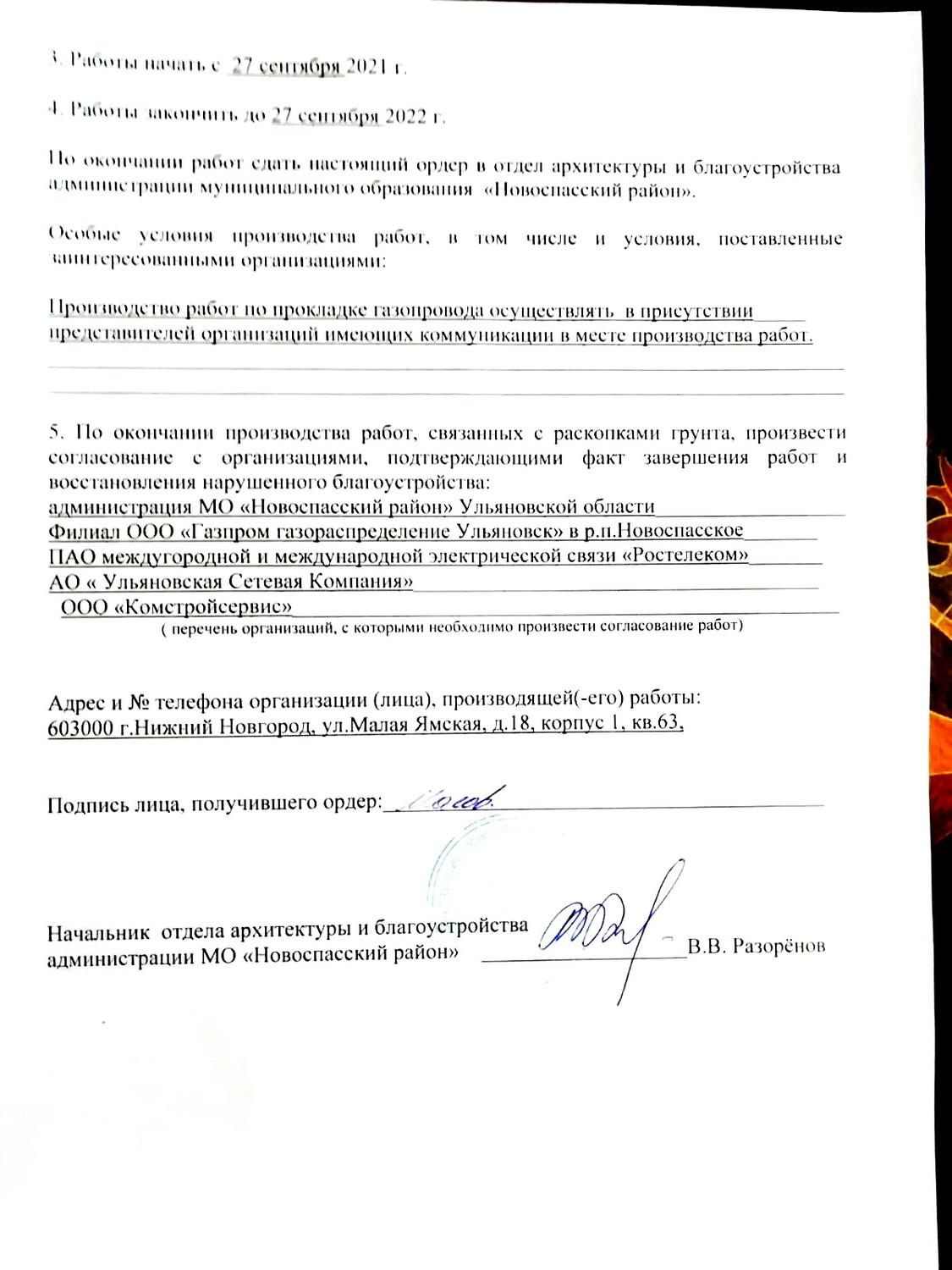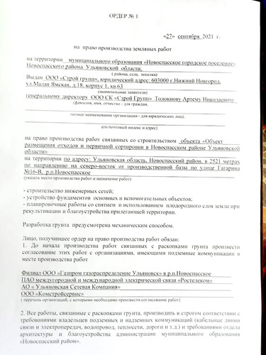 1. Дата выдачи ордера - 27 сентября 2021 года. Активисты были на полигоне 29 сентября, как мы уже сказали, у прораба на руках ордера на тот момент не было. Хотя от администрации до стройплощадки порядка 3 км расстояние.