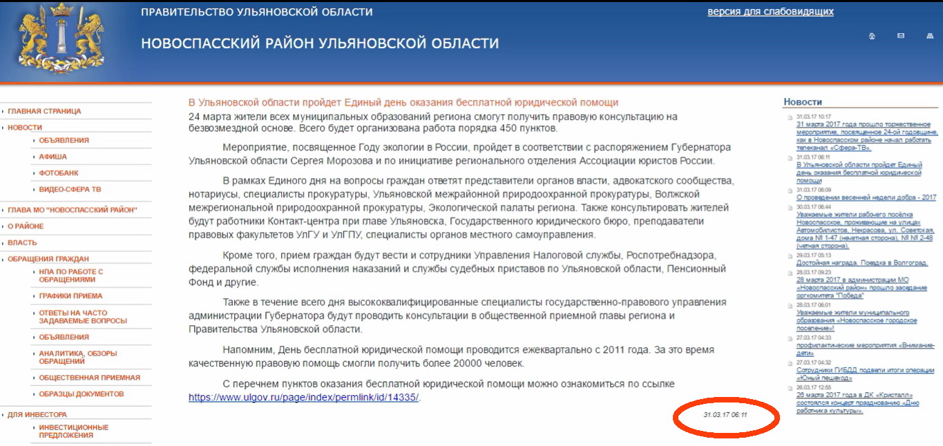 А причина произошедшего удивительно проста: в администрации Новоспасского района, 24 марта - это 31 марта. Именно в этот день на официальном сайте МО "Новоспасский район" появилась информация о том, что можно получить бесплатную помощь.