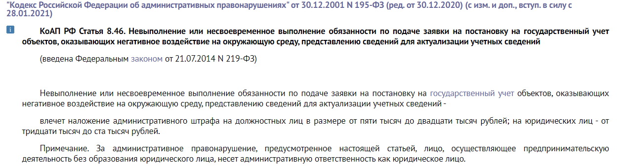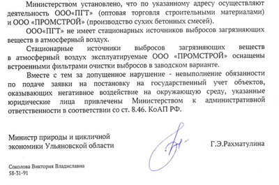 Так вот, согласно этому ответу, министерство выявило только одно нарушение - указанные в ответе организации не подали заявку на постановку на государственный учёт, как объекты, оказывающие негативное воздействие на окружающую среду. И они за данное деяние привлечены к административной отвественности по КоАП РФ.
