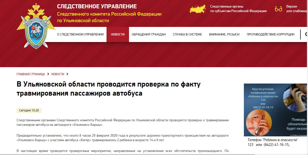 Так, например, СК области указывал автодорогу Ульяновск - Барыш.