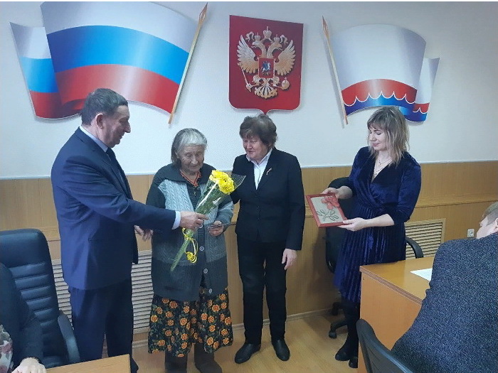 З.А. Кудинова и Глава района – председатель «Серебряной администрации» МО «Новоспасский район» А.С. Вражнов вручили нагрудные знаки и удостоверение «Дети войны» Бешанову В.П. и Сурковой Е.С.